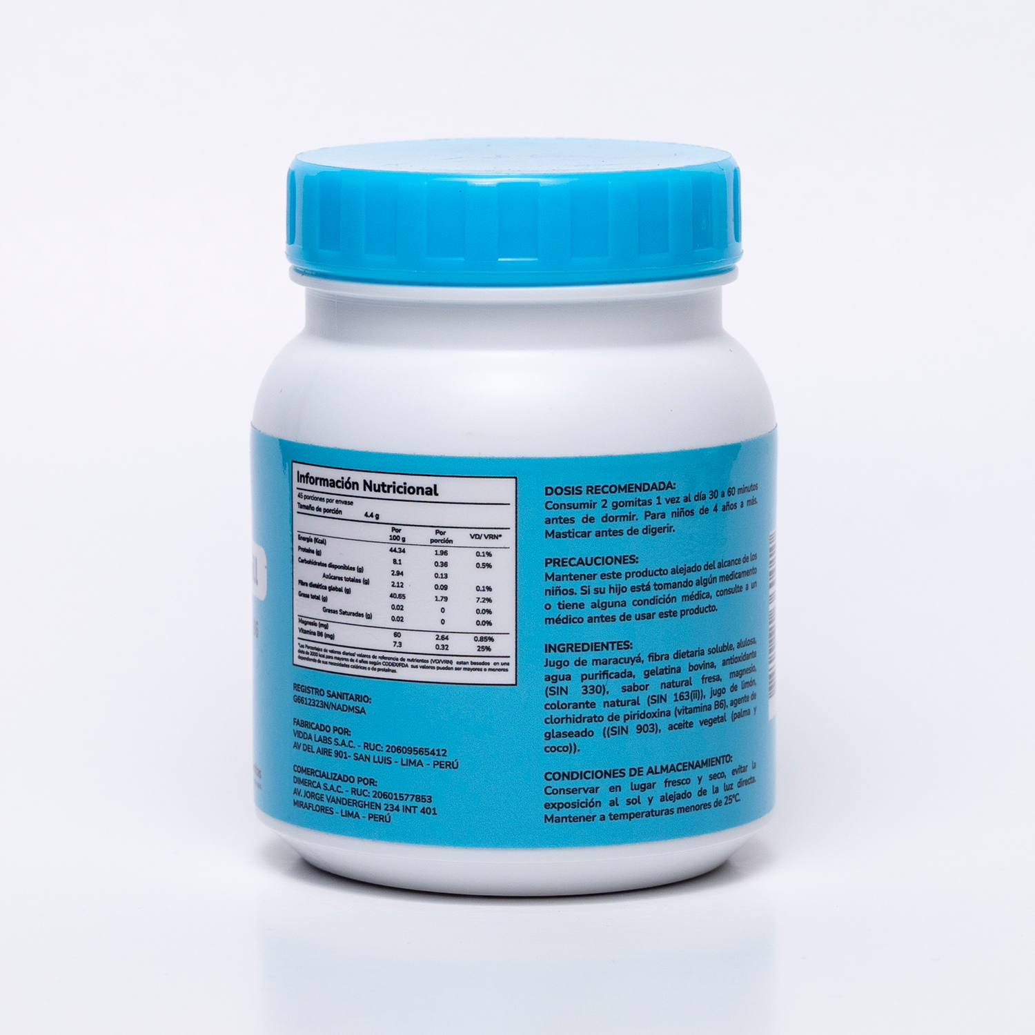 Gomitas especialmente formuladas para ayudar a los niños a descansar mejor, con ingredientes que favorecen la calma y la relajación, para que despierten con energía renovada.